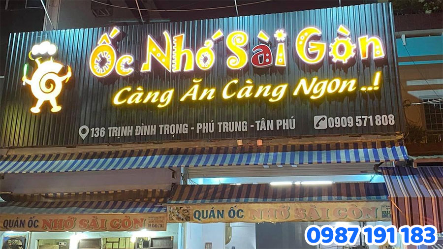 Làm bảng hiệu là khoản đầu tư thông minh giúp cửa hàng của bạn nổi bật và hút khách. Giữa hàng ngàn đối thủ như hiện nay việc sở hữu bảng hiệu quán ốc đẹp, chuyên nghiệp chính là điều góp phần mạnh mẽ vào sự thành công cho thương hiệu của bạn!