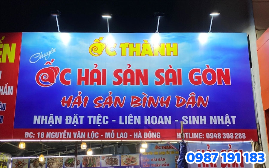 Bảng hiệu Hiflex có giá thành rẻ, được thiết kế, in ấn nhanh chóng, vì thế rất phù hợp với những quán ốc bình dân hay dùng để làm bảng hiệu phụ.